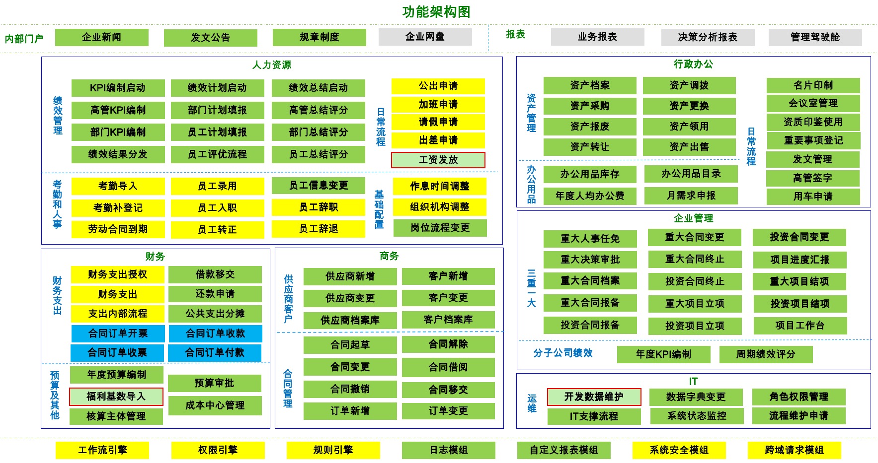 企(qi)業運營(ying)管家系統(tong)是(shi)采用(yong)業界主流技(ji)術架構,依托先進設計理念和全(quan)新管理思想(xiang), 專為中大型組織(zhi)開發(fa)的一套高(gao)效協同辦公(gong)系統(tong)。 系統(tong)包含6大板塊,138個功能, 企(qi)業可以(yi)依據(ju)本企(qi)業當前的業務需求(qiu), 選擇合適(shi)的功能組合,能夠滿足企(qi)業內部各類個性(xing)化辦公(gong)應用(yong)需求(qiu)。